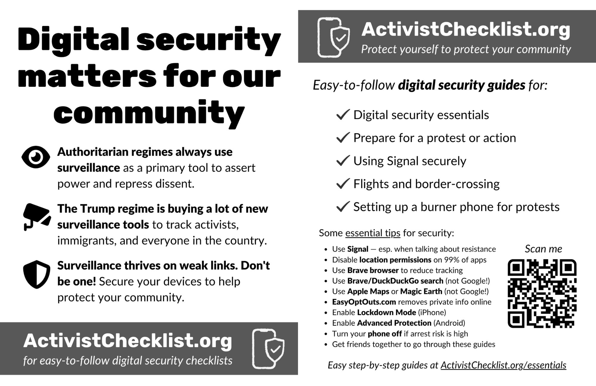 What is this flyer? We created a flyer to bring to big public protests and community events so it's easy to spread the word about digital security and Activist Checklist.